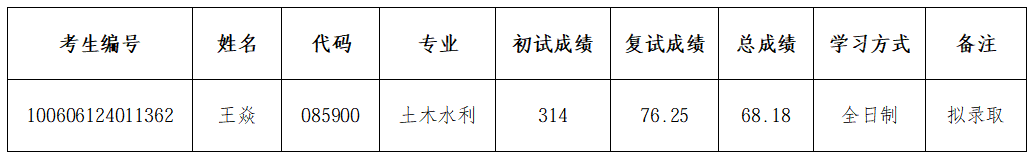根据《天津理工大学2026年硕士研究生招生复试录取工作方案》要求,现对2026年海洋能源学院土木水利专业拟录取硕士研究生(一志愿)名单进行公示。