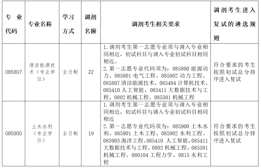 注:调剂名额可能随招生计划、复试情况微调,具体以我校在调剂系统发布的调剂余额信息为准。若名额调整,将按照考生总成绩排名顺次录取。
